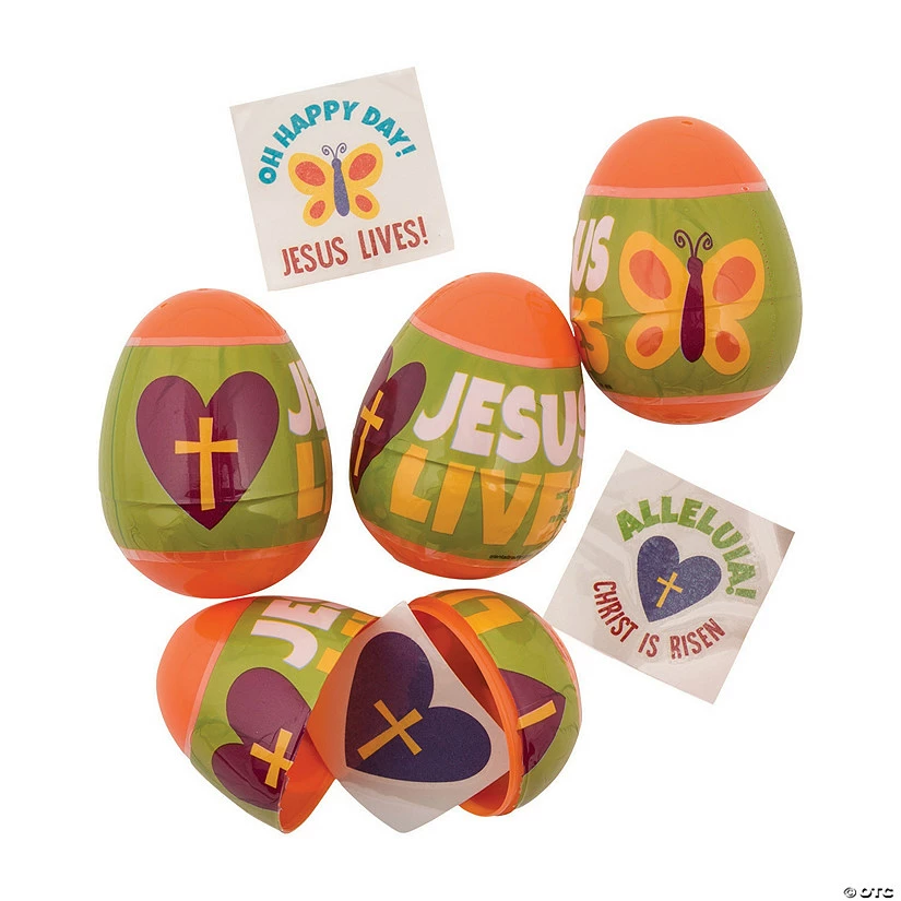Wholesale ✨ 2 1/2″ Religious Tattoo-Filled Plastic Easter Eggs – 12 Pc. 💯
