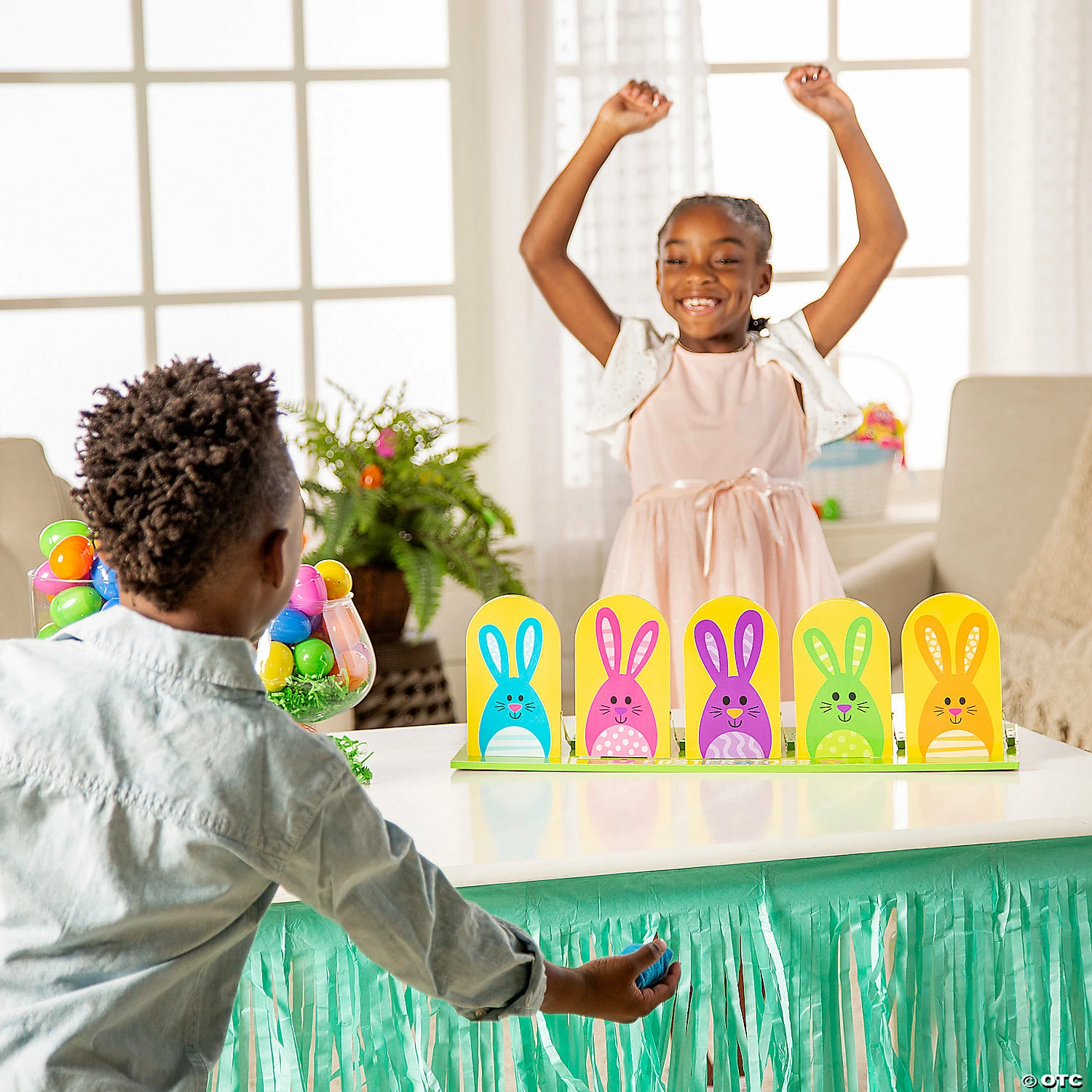 How many bunnies can you knock down? Stand them up, then toss the included bean bags and count your total. Play alone and try to beat your own high score, or play with a group and see who can knock down the most bunnies! Makes a great activity for birthday parties, Easter egg hunts or other Easter events at church, home or school. Includes one 2 ft. x 7 1/4″ wooden board and five 3″ bean bags. (6 pcs. per set) Bunnies stand 7″. ยฉ OTC