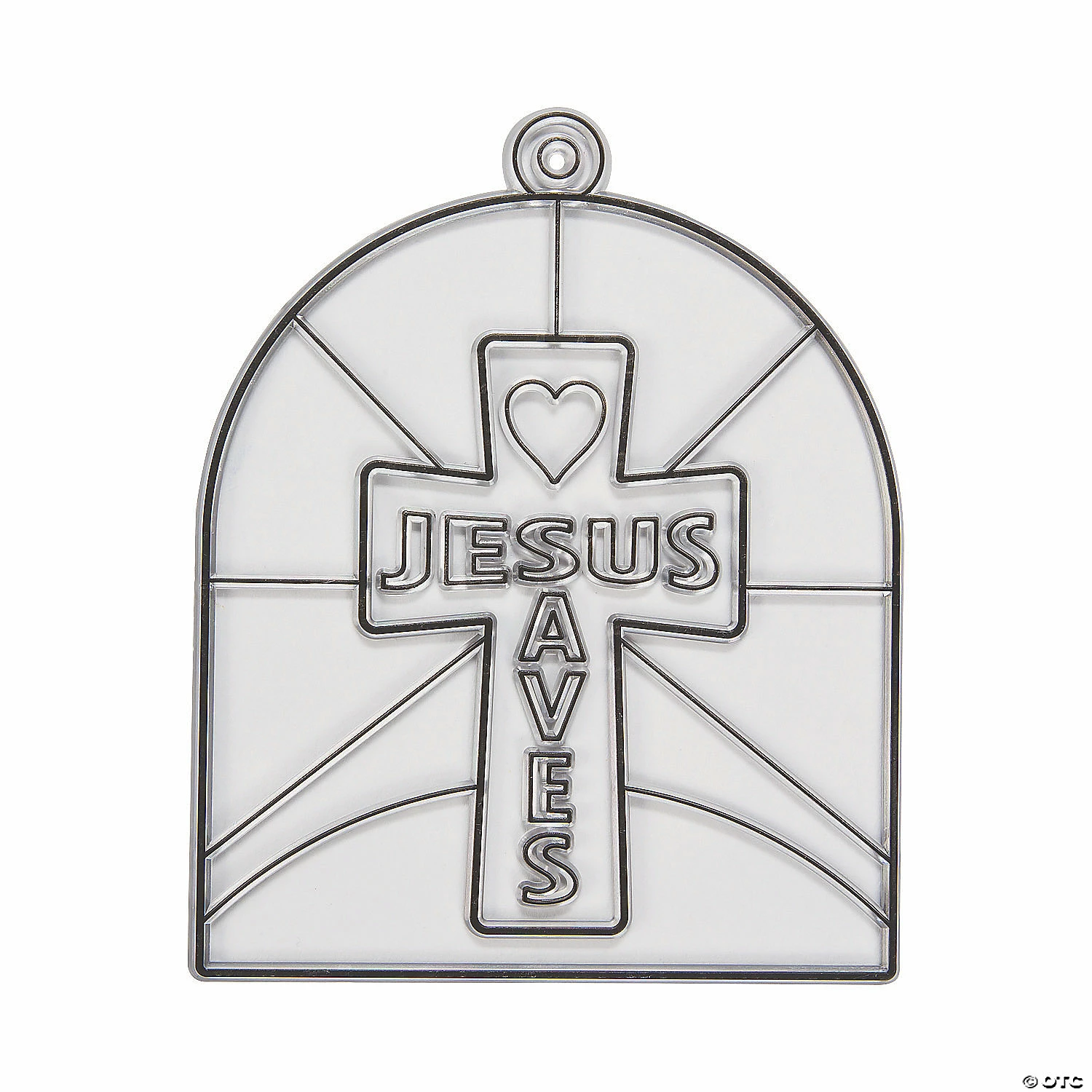 Express your love for Jesus in a creative and unique way! A great addition to religious craft supplies, these suncatchers feature a cross with text that reads “Jesus Saves”. An easy Easter DIY project for kids, little ones of all ages will have a blast using their own paints to bring these suncatchers to life. Once finished, hang in a window and let your work shine! Plastic. (2 dozen per unit) 4 1/2″ x 6″ © OTC