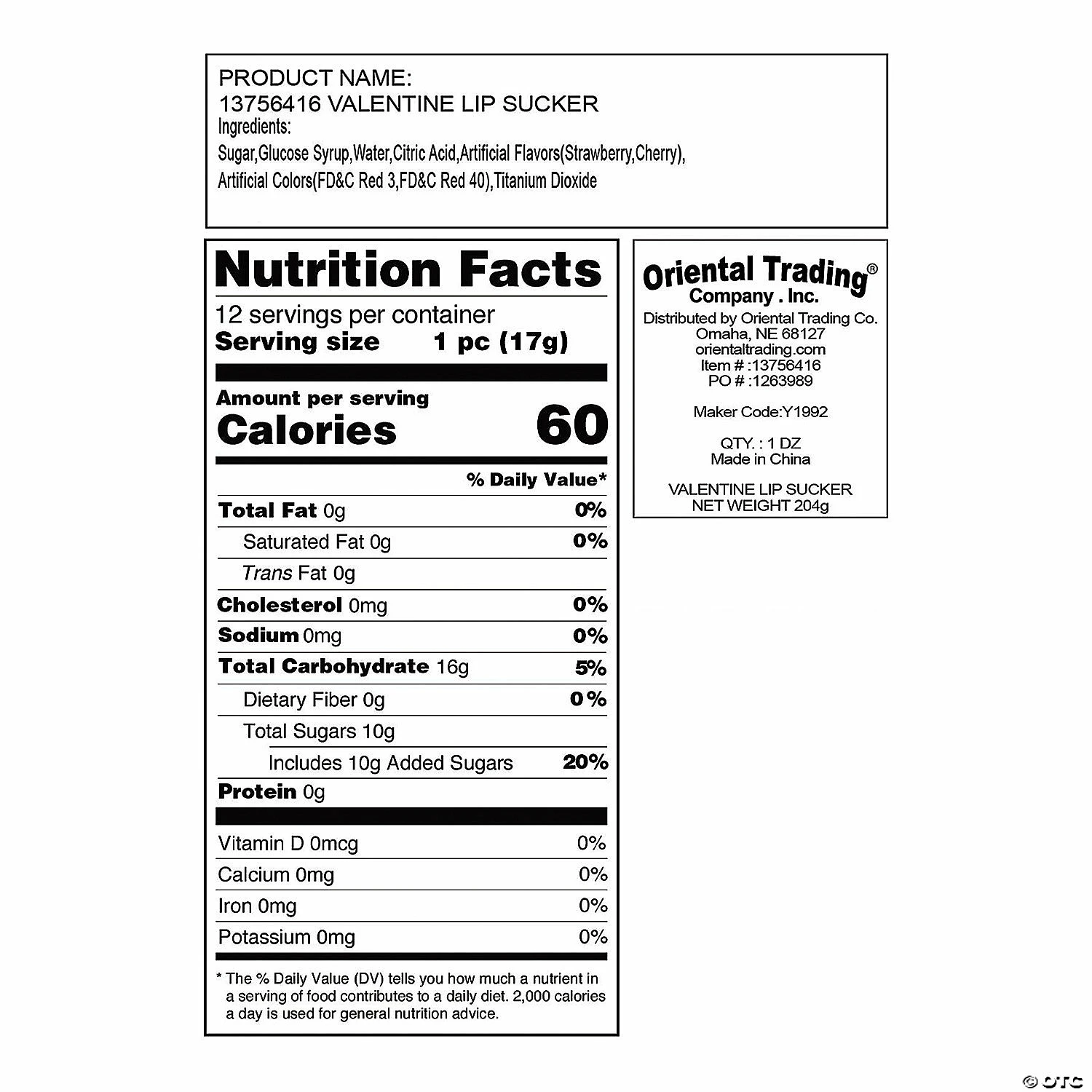 Make it an extra sweet Valentine’s Day with these Valentine Lip Suckers. Perfect to include in any valentine exchange, these suckers are perfect to use in the classroom, at work parties, candy buffets and more. Each 2″ lollipop is on a 4″ plastic stick. Cherry and strawberry flavors. Individually wrapped. Fat-Free. 7 oz. Candy is non-returnable. For more information, visit our “Return Policy” page located on our website. © OTC